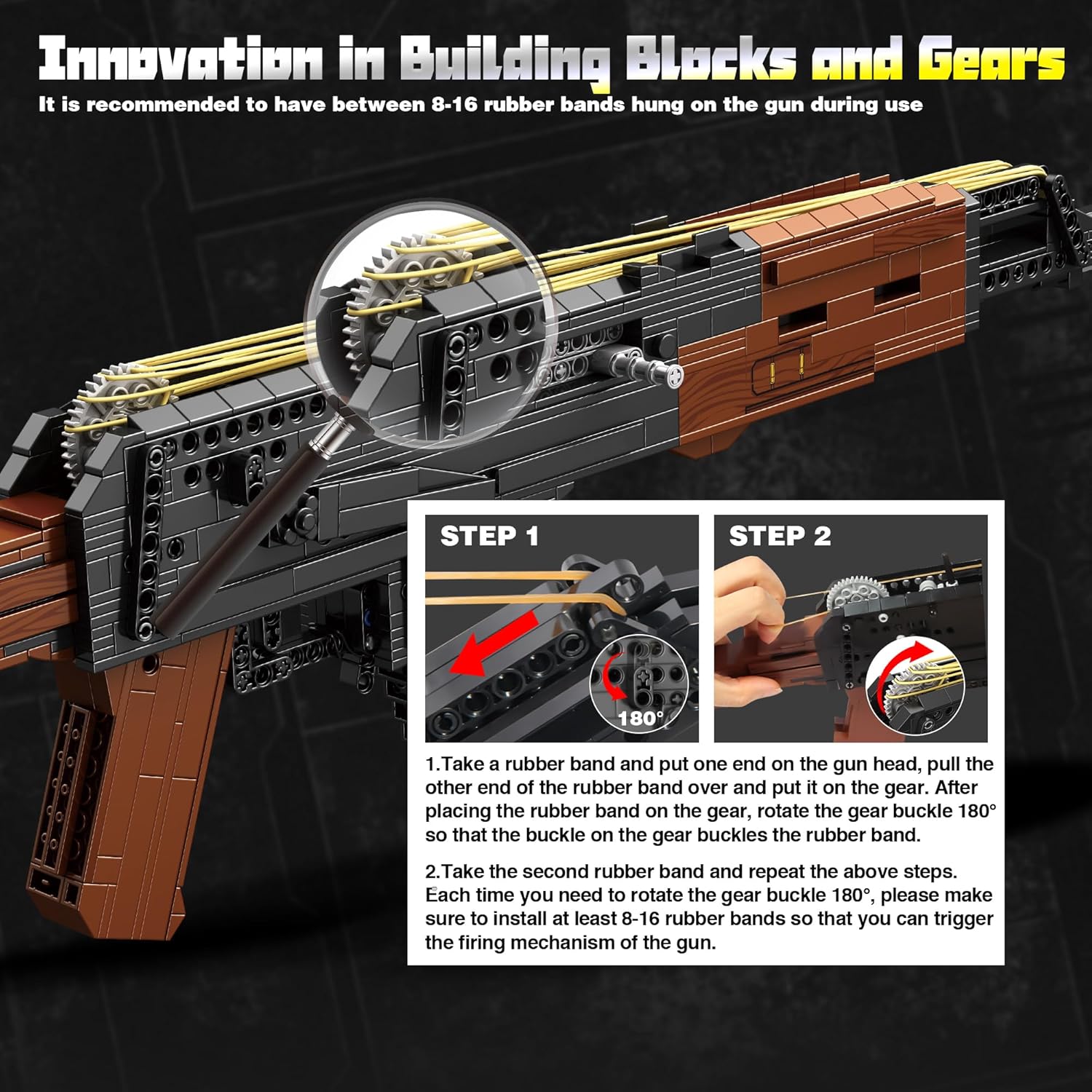- Dynamic display and high playability: This building block gun is not only a static display model, but also realizes the ejection function through a simple mechanical structure. It can simulate the real shooting experience by firing rubber bands, increasing the strong sense of experience and high playability.