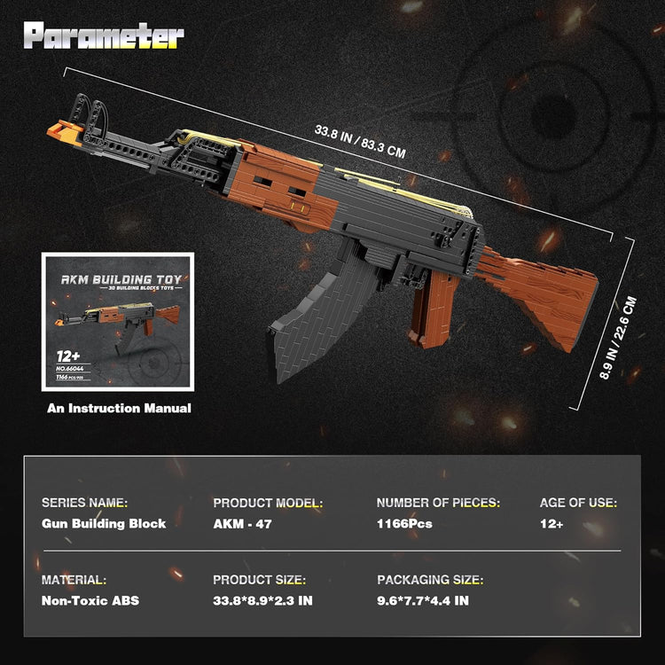 - Perfect Gift Choice: Whether it's a birthday, Christmas or other special holidays, this AKM-47 building block gun is a great gift for building block enthusiasts, gun enthusiasts, and children and adults aged 14 and above.