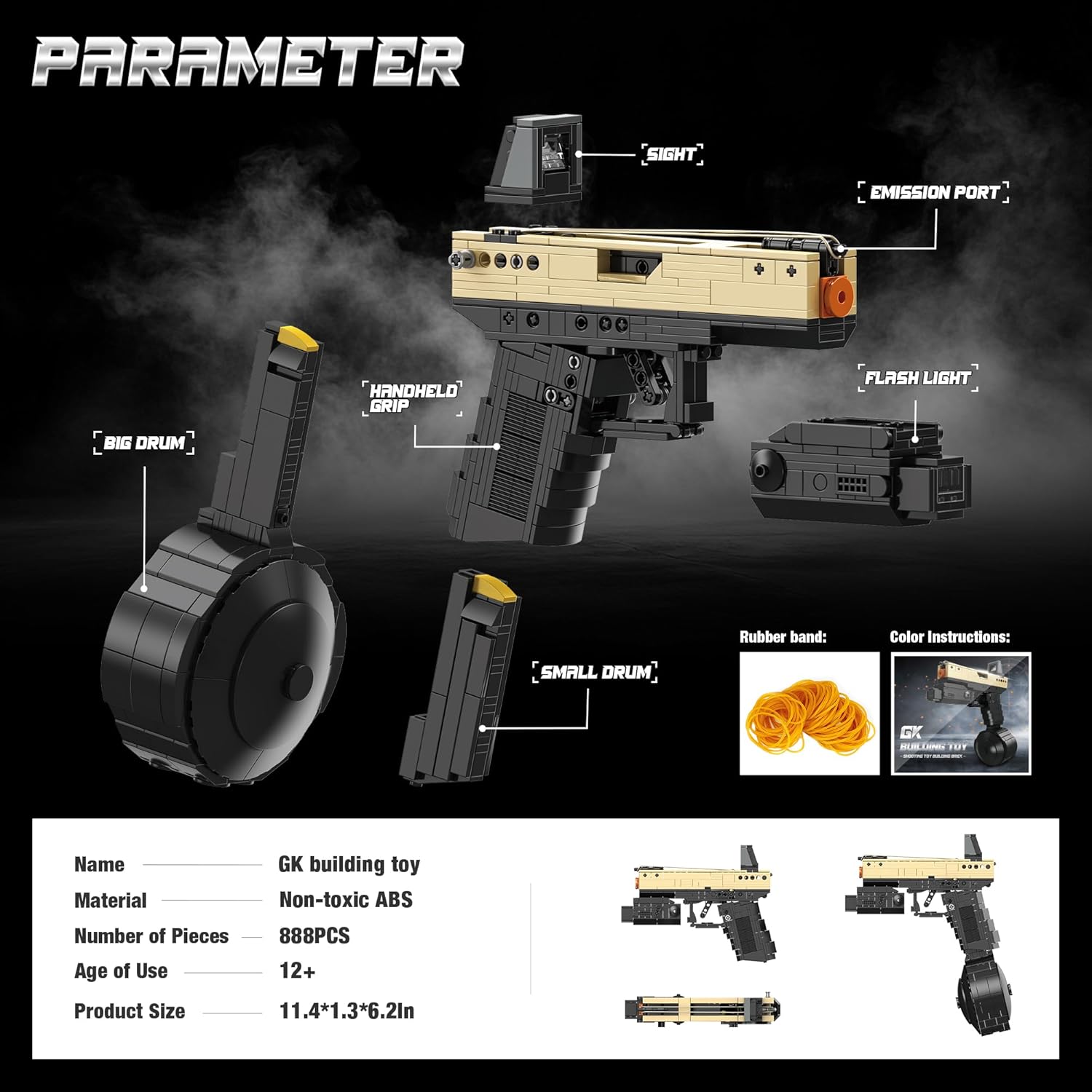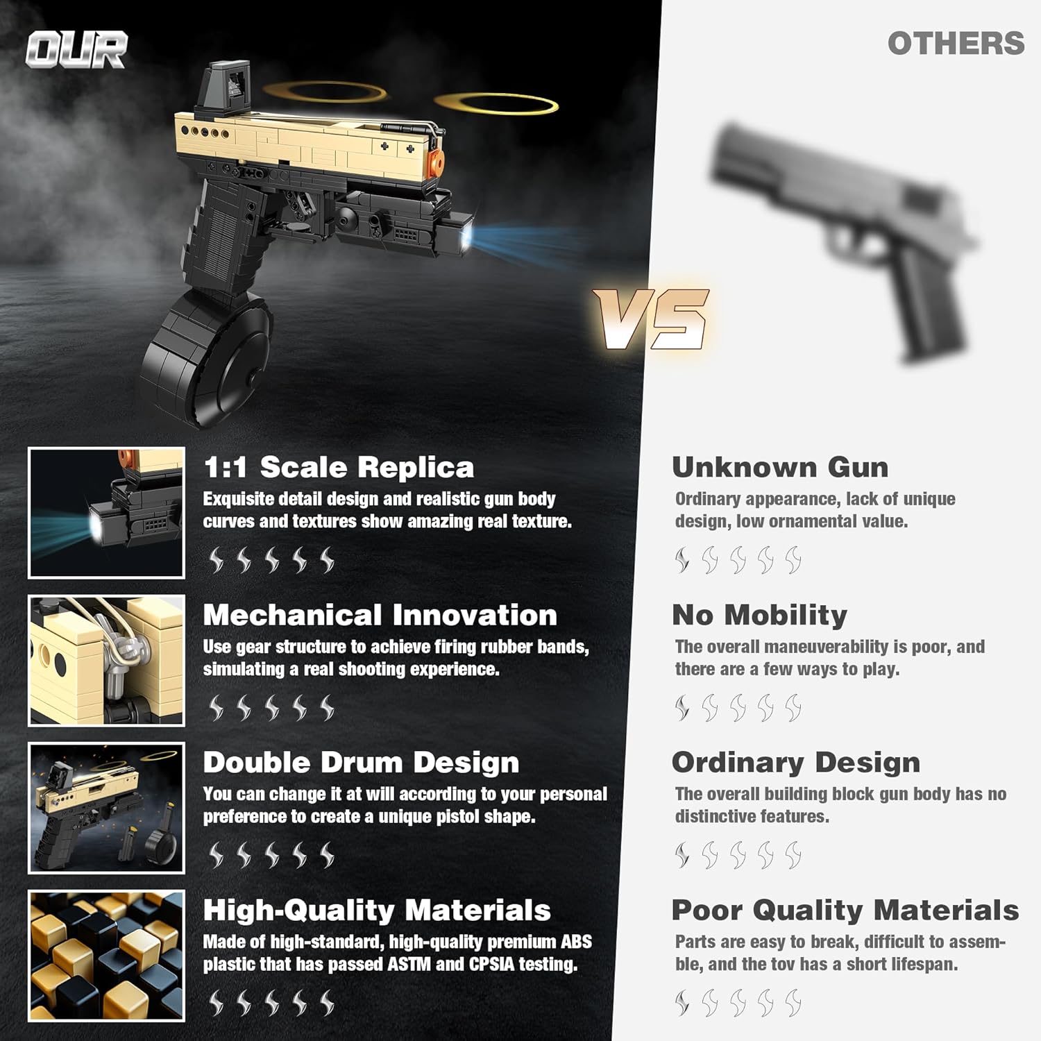 - Dynamic Display and High Playability: This building block gun is not only a static display model. It realizes the ejection function through a simple mechanical structure. It can shoot rubber bands, simulate the real shooting experience and enhance playability.