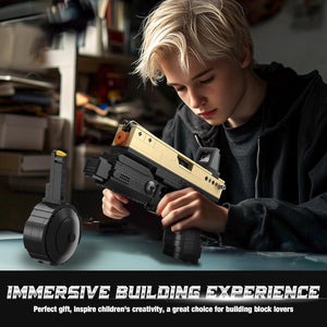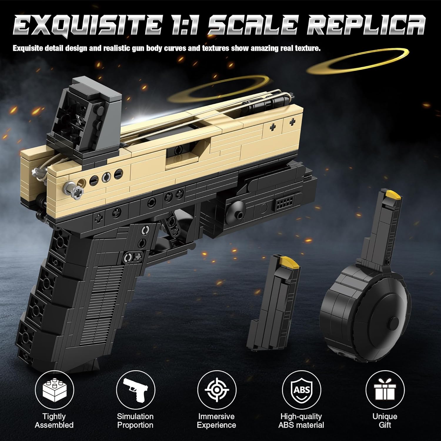 - Exquisite 1:1 Scale Replica: This pistol building block model perfectly reproduces the classic shape in a 1:1 ratio. The exquisite detail design and realistic gun body curves and textures show amazing real texture, making the building experience more vivid.