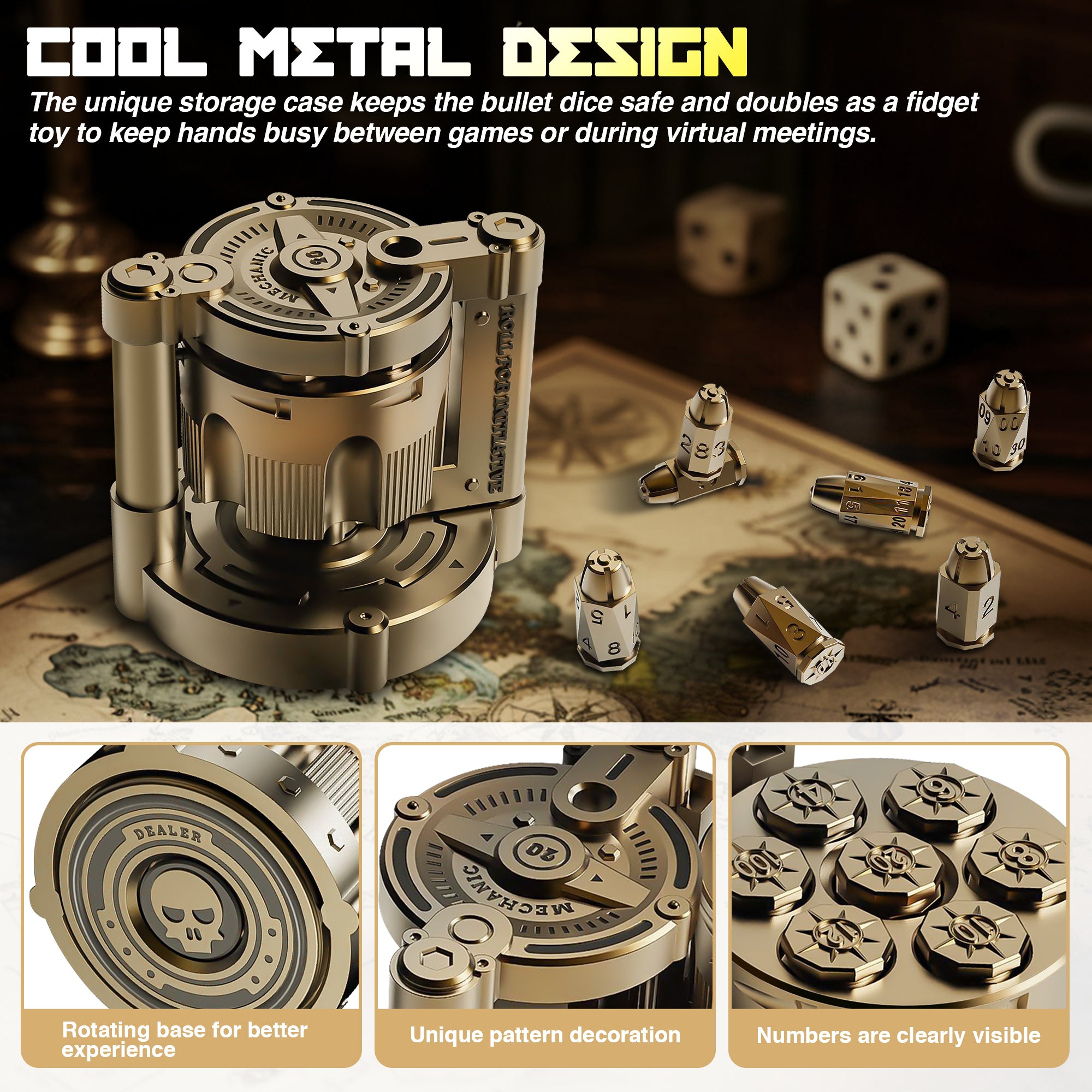- Cool metal design: Imagine a stylish cylindrical dice holder, paired with seven uniquely shaped dice, instantly becoming the center of attention! Made of metal material, incredibly sturdy, it feels heavy in the hand and has an explosive texture. Unique pattern decorations add wonderful tactile elements to your gaming experience, as if every touch is opening up an exciting adventure.