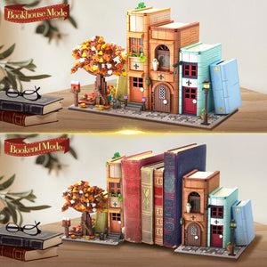 - Unique Design Concept: The magic bookends building is composed of five books, autumn trees on the street, heart-shaped leaves, retro street lamps and mailboxes, doors that can be opened, and small Christmas boxes. The book stand building design is inspired by the mysterious magical world. The clever combination makes this bookend full of fairy tale colors, adding fun to busy life.