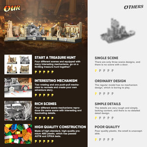 - Temple Building BlockStart Your Treasure Hunt: This temple building set recreates the iconic scene and is equipped with many interesting mechanisms to recreate the same scene with interesting and fascinating details. Join the protagonist on a thrilling treasure hunt!