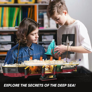 - [Highly Playable] This titanic model kit is designed with a 2-in-1 model of driving and shipwreck. The hull can be disassembled and separated, equipped with a glacier can simulate the scene when the shipwrecks. This structural architecture is more playable. The hull structure is stable and the model is solid no matter in driving or wrecking mode. When assembling this titanic toy ship, you can not only experience the fun of creation, but also feel the charm of the sea world.